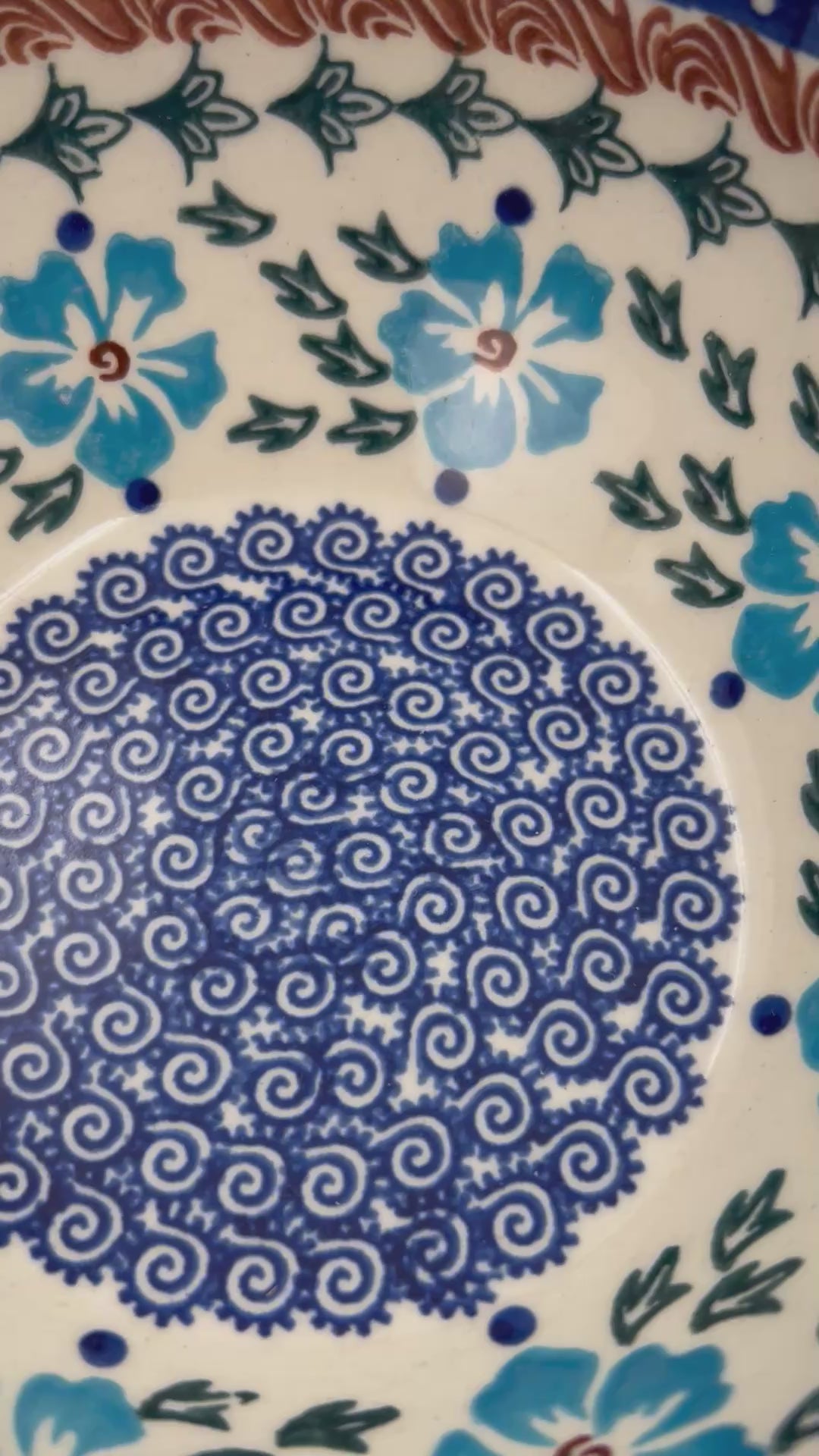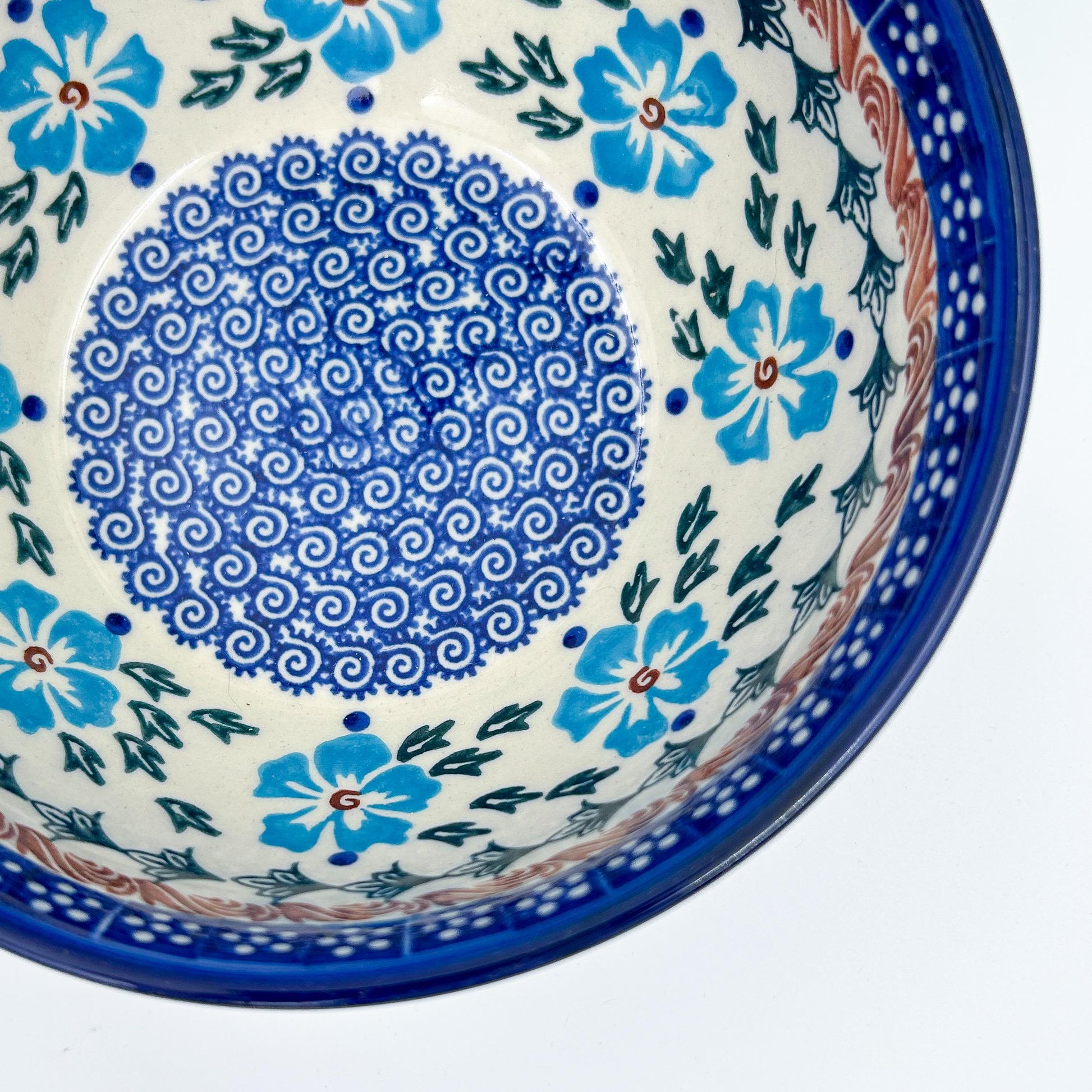 Polish pottery 6.” Farm Bowl in the Blue Cornflower pattern. This Polish Pottery bowl is made by talented artisans from Poland. It holds 23 ounces of fluid