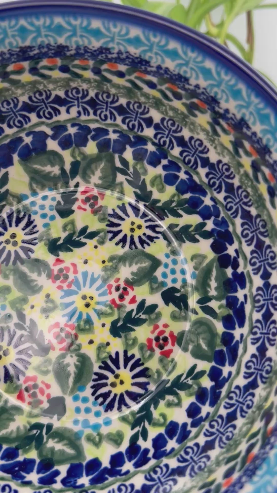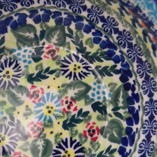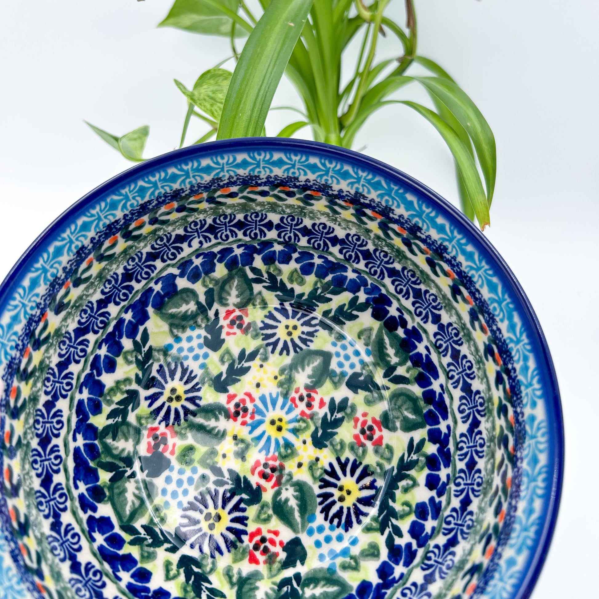 Polish pottery 6.” Farm Bowl in the UNIKAT Butterfly Flor-de-lis pattern. This Polish Pottery bowl is made by talented artisans from Poland. This UNIKAT Signature bowl means it has been hand painted with both sponges and brushes and it is signed by the artist who painted it. It holds 23 ounces of fluid