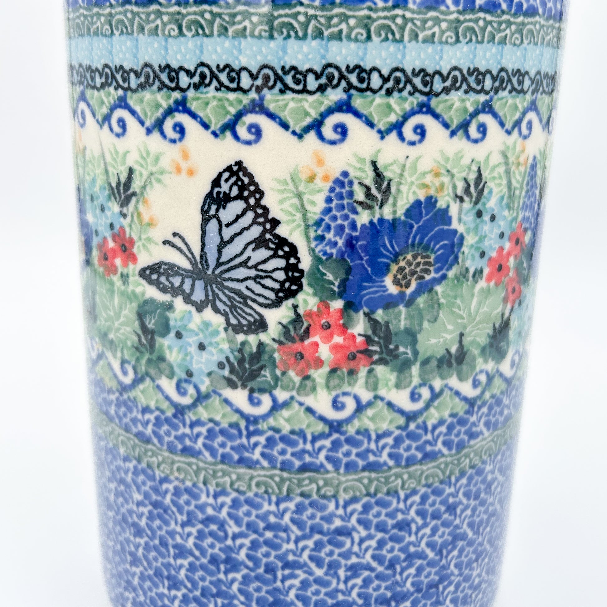 Utensil Jar 8”. Handmade Polish pottery. UNIKAT Mariposa Design