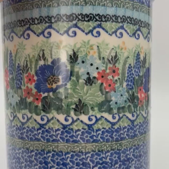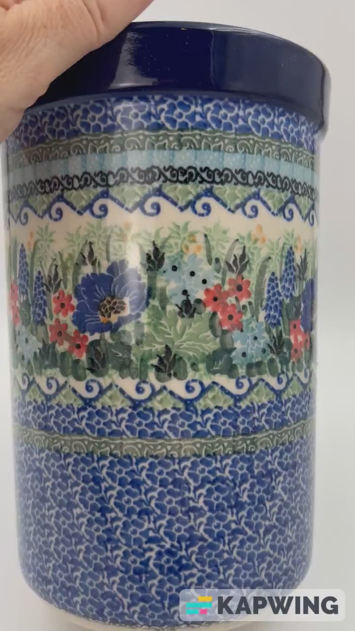 This 8” Utensil holder is a handmade by talented Polish artisans. This is a Polish UNIKAT signature utensil jar, which means it has been hand painted with both sponges and brushes and is signed by the artist who painted it.